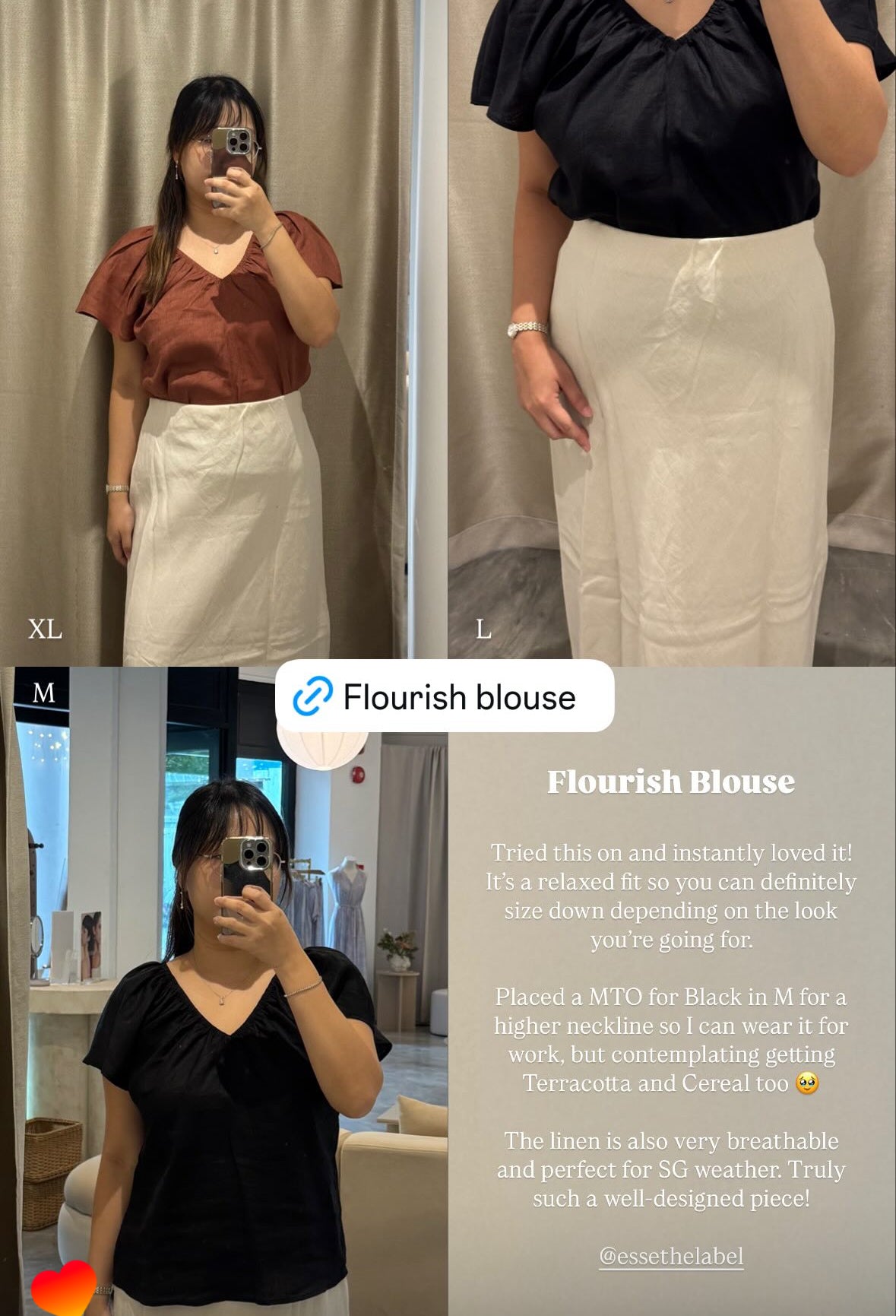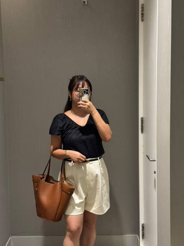 In love with my terracotta top, the gathered hem and flutter sleeves are so pretty, and breathable linen fabric works super well in this crazy hot weather ! Took off a star because the armhole is just way too big (it does increase ventilation though ;-))
