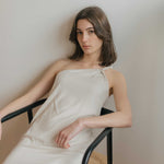 Our take on a formal dress that takes you across multiple occasions. Channel Grecian goddess vibes with this toga dress, featuring a twisted strap detail.