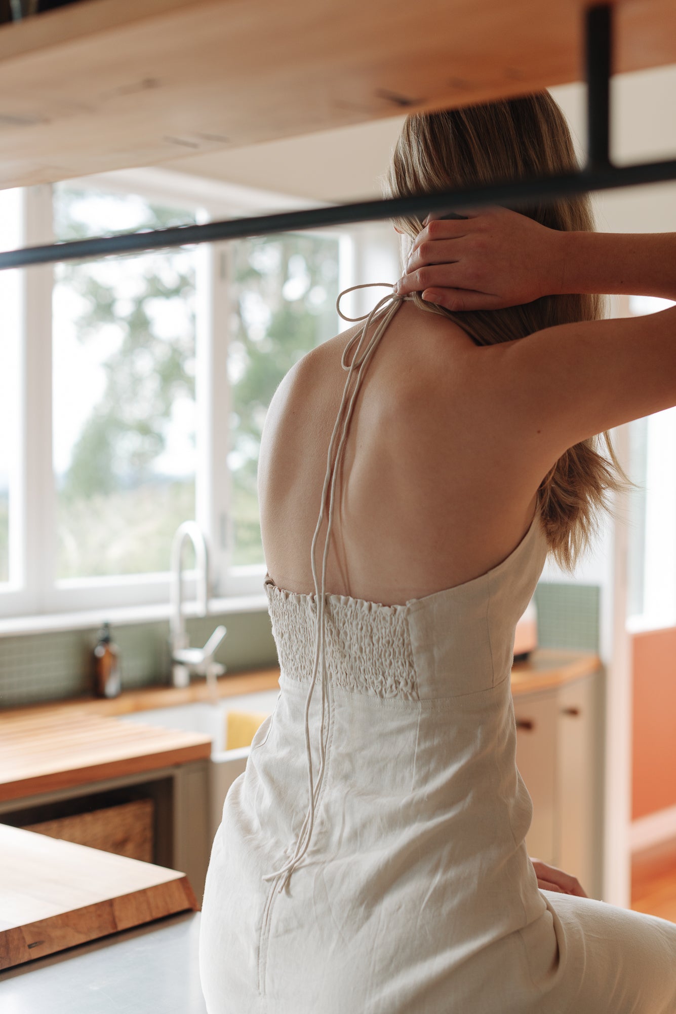 Designed for versatility, this multiway dress transforms to suit every occasion — from relaxed weekends to special evenings. Crafted in breathable linen, it features adjustable ties and clever construction so you can style it multiple ways. A wardrobe staple that moves with you, season after season.