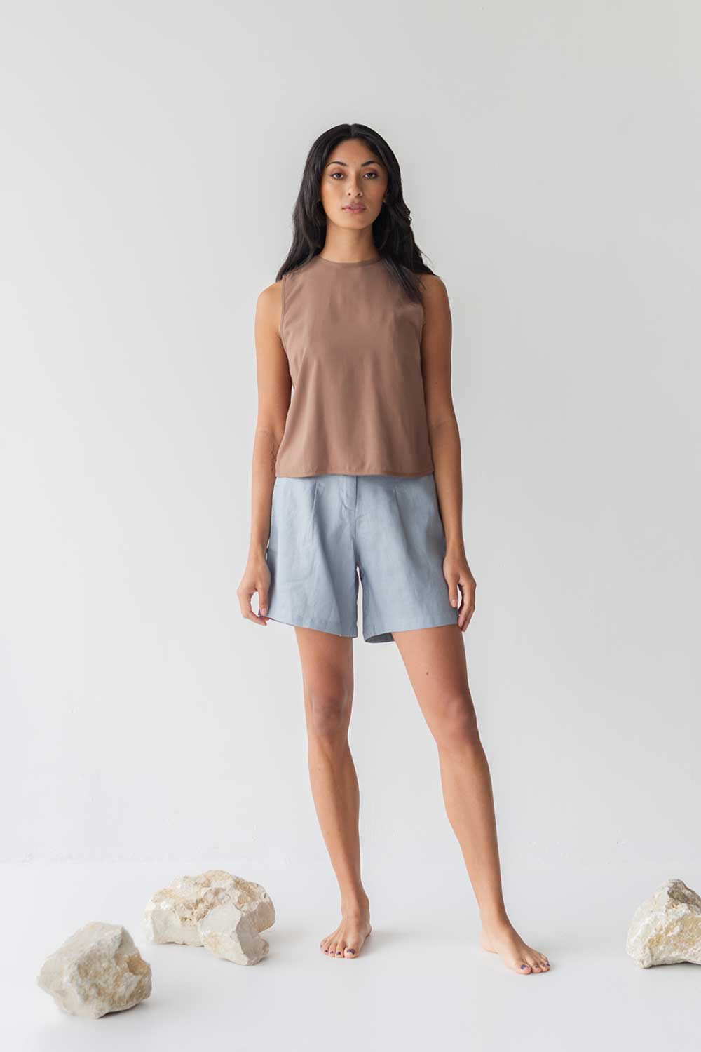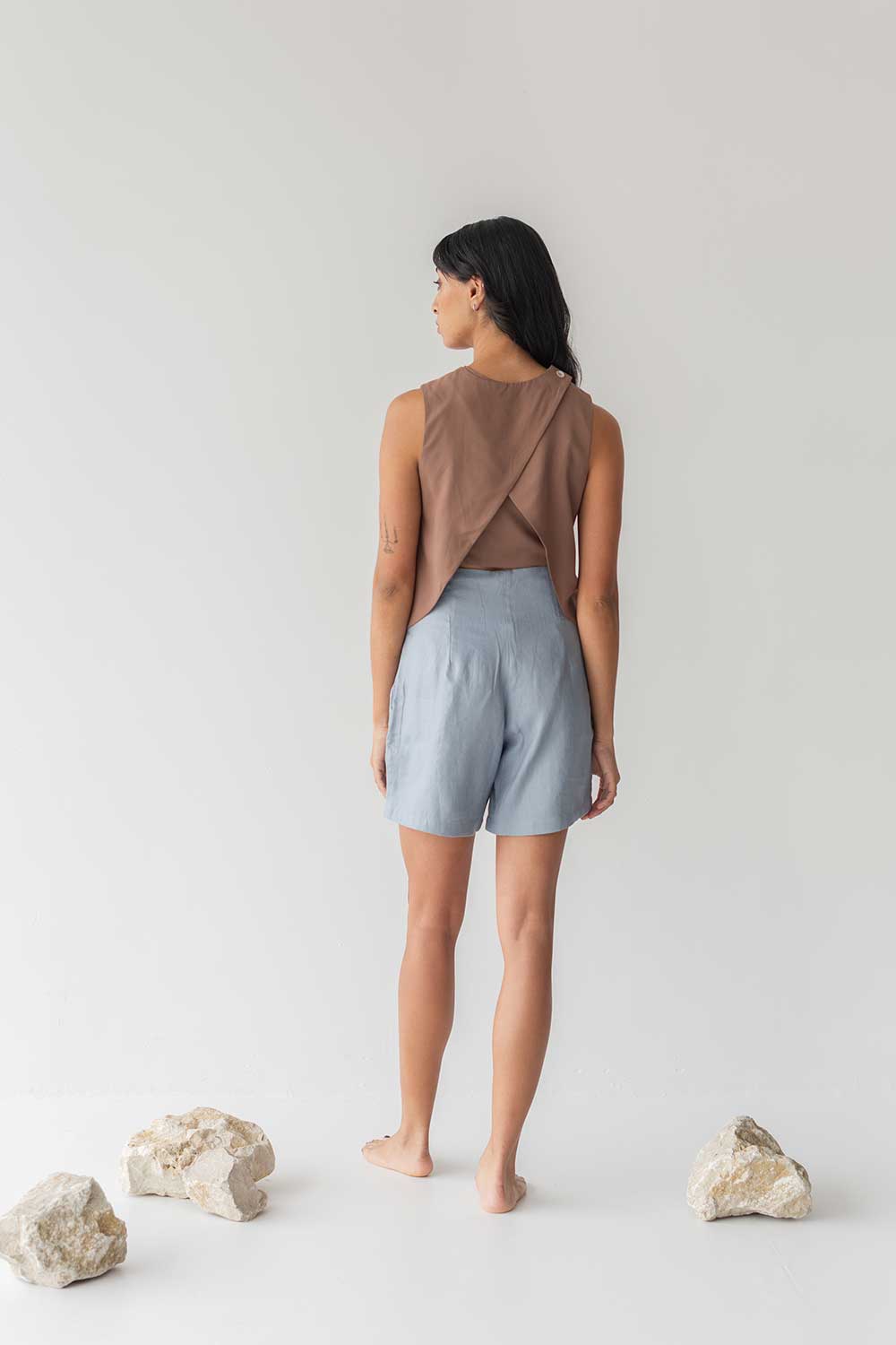 Designed for the balance of breathability and detail, this top transitions effortlessly from morning errands to evening catch-ups — offering a cool, unexpected twist in the back.