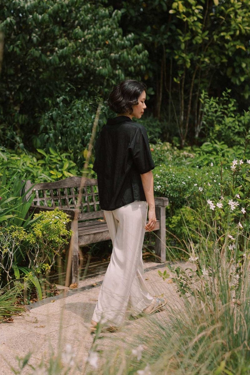 A breezy boxy shirt with lapels for a more dressed down look - perfect for layering over tank tops and dress for an androgynous, casual day out. Featuring unique hand-knotted buttons, this piece is breathable, regulates body temperature well and does not crease easily.